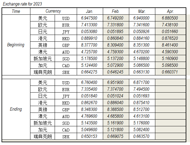 2023年3月外匯匯率,來源中國人民銀行供參考。