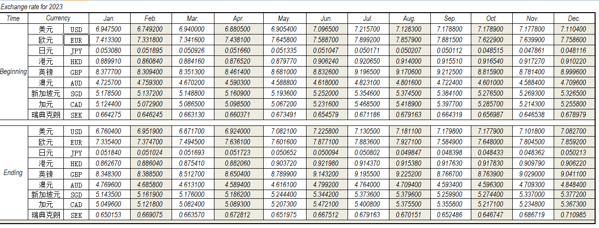 2023年12月外匯匯率,來源中國人民銀行供參考。