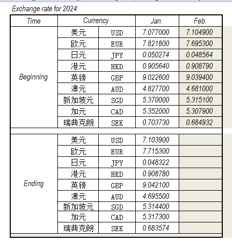 2024年1月外匯匯率,來(lái)源中國(guó)人民銀行供參考。